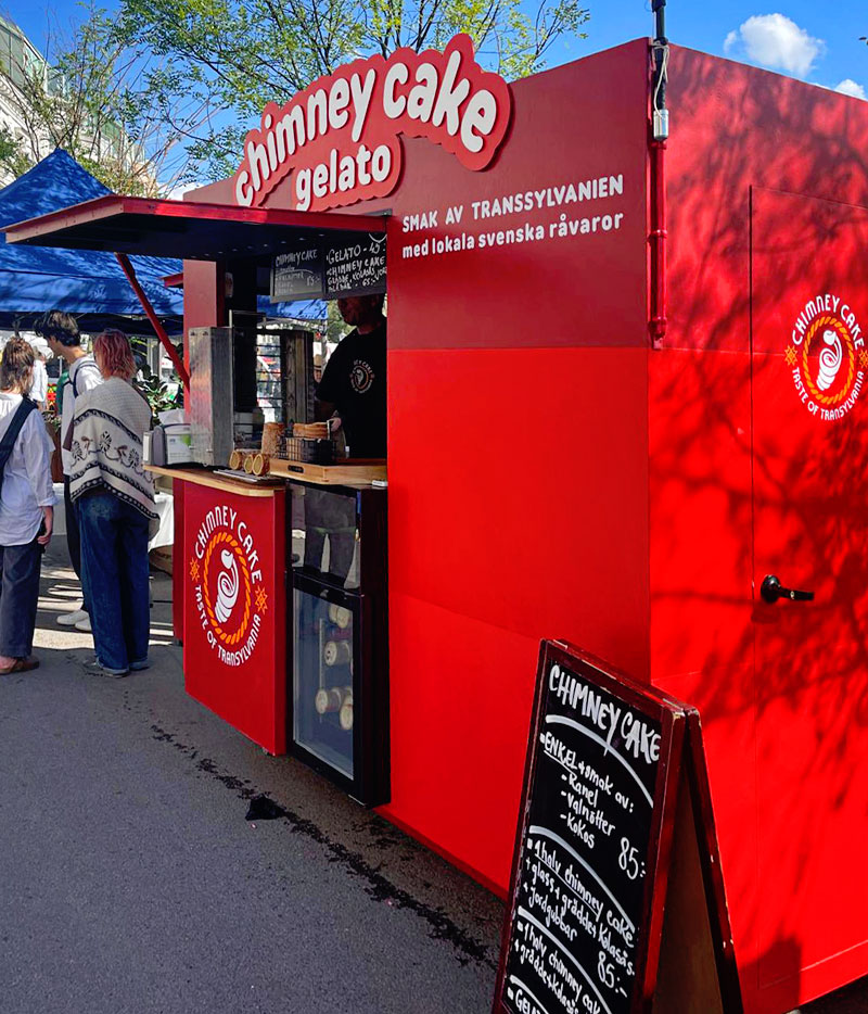 The booth is equipped with everything we need to prepare fresh chimney cakes on place. It is easy to transport it and place it on your event spot. Party, wedding, anniversary, company meeting. Feel free to contact us for a quotation.